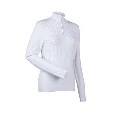 Wear this number with jeans or as a second layer on the slopes; the NILS Destinee is all about versatility. This 1/4 zip t-neck knit sweater with multiple cable bodice, zig-zag stitch border and cable sleeve detail is nothing but high quality perfection.