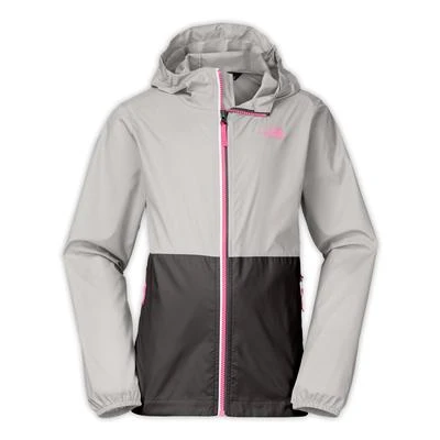 The North Face Girls Flurry Wind Hoodie is the ideal for windy weather. This wind jacket is made of nylon with a DWR finish. It features a color block mix. adding to the style of your adventurers jacket. The Girls Flurry Wind Hoodie includes encased elastic on the hood and cuffs. With zip side hand pockets for holding goodies and only weighing an average of 142 g. this jacket is perfect for any windy day exploration.